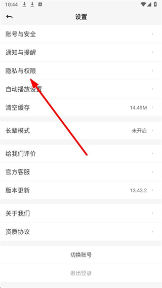 3、在隐私与权限页面,点击列表下方权限管理选项,进入权限管理页面。