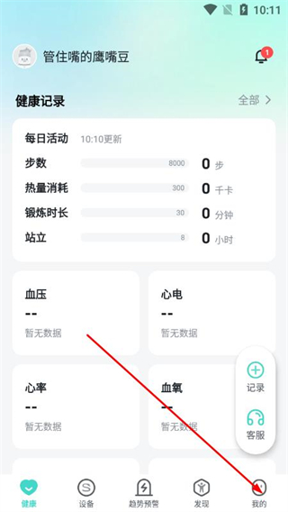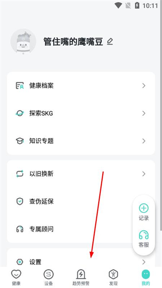 1、打开SKG健康,点击底部导航栏的我的选项。