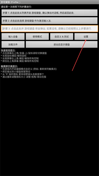 1、启动游戏键盘APP,进入时点击右侧设置的按钮。