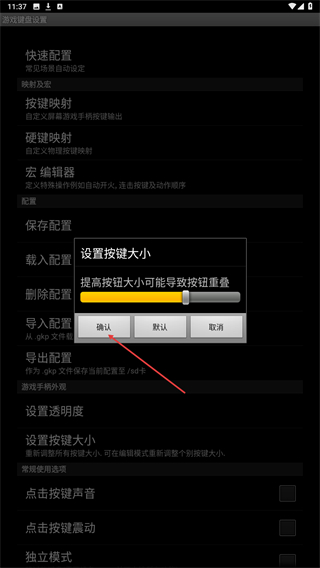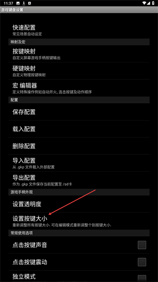 2、进入设置的页面内,点击下方设置按键大小的按钮。