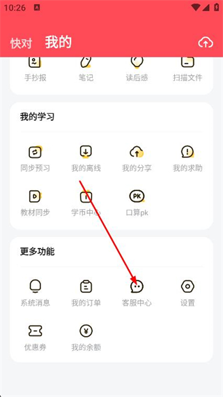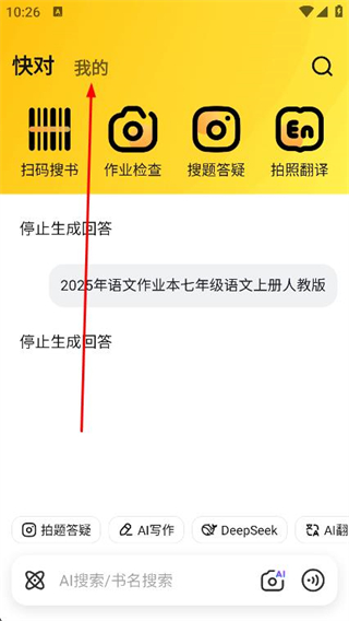1、打开快对作业APP,点击页面顶部的我的选项。
