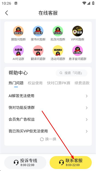 3、进入在线客服页面后,点击底部的联系客服。