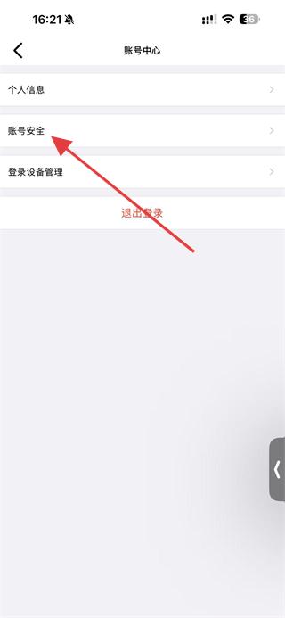 3、在账号中心页面,点击账号安全选项,进入账号安全设置页面。
