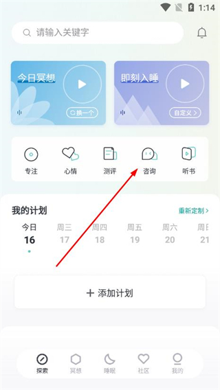 1、打开小情绪app的“探索”页面,找到并点击咨询,进入咨询页面。