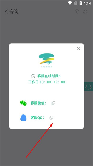 3、在窗口中,可查看客服在线时间,并通过客服微信或QQ与客服取得联系。