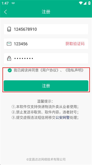 4、勾选“我已阅读并同意”相关选项,点击下方的注册按钮完成账号注册操作。