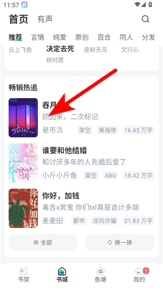 1、在长佩文学城书城页面,点击目标小说,进入书籍详情界面。