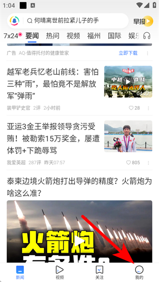 1、打开腾讯新闻APP,点击底部导航栏我的,进入个人页面。
