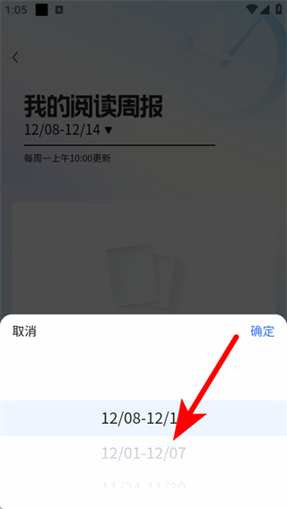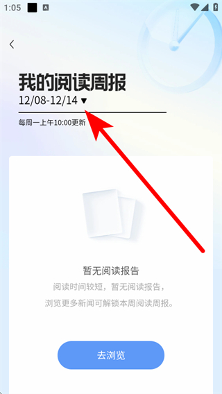 3、进入阅读周报页面后,我们需要点击页面上方的时间选择栏。