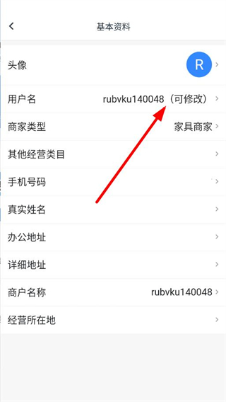 3、在基本资料页面,找到用户名选项并点击。