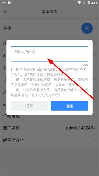 4、在弹出的请输入用户名输入框中,填写新的昵称,点击确定即可完成昵称修改。
