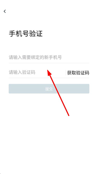 4、在新页面输入需要绑定的新手机号,获取并填写验证码后点击提交,即可完成手机号绑定修改。