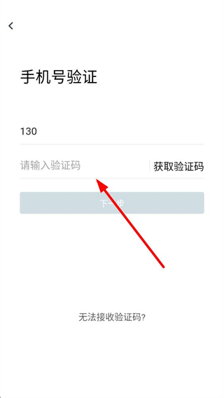 3、在手机号验证页面,点击获取验证码,输入收到的验证码后进入下一步。