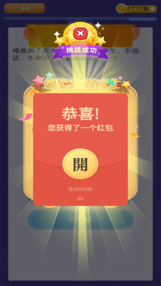 4、完成题目作答后,查看挑战成功的提示界面,获取对应的奖励并准备后续操作。