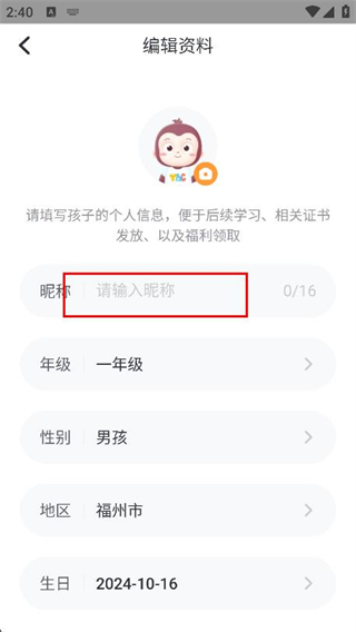 2、在编辑资料页面的昵称输入框中,输入想要修改的新昵称。
