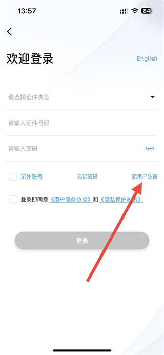 3、在登录页面,选择新用户注册选项,进入注册页面。