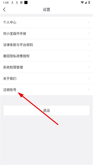 3、在设置页面中,点击注销账号选项,进入注销账号页面。