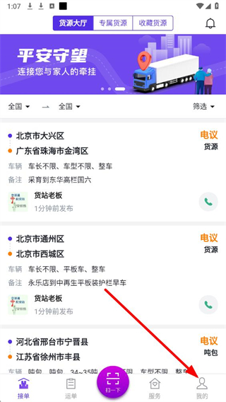4、点击“登录”按钮,完成登录,进入App主界面,可查看货源等相关信息。