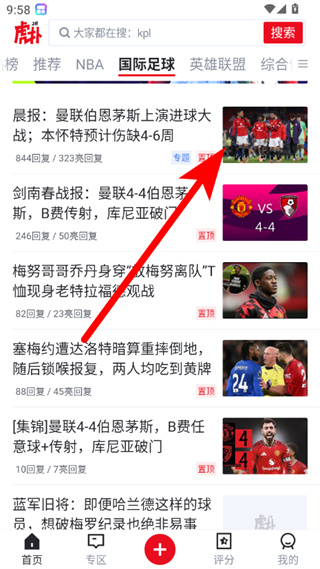 2、在国际足球专区,选择要分享的内容,点击进入详情页。
