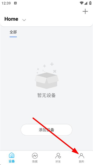 2、进入到首页内,点击添加设备的功能按钮。