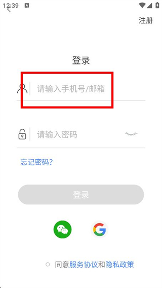 3、在登录页面的输入框中,填写对应的账号信息。