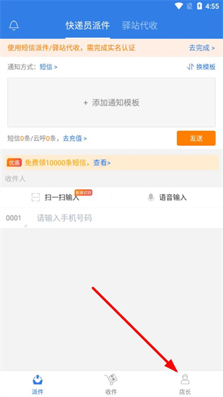 1、进入应用界面后,点击首页底部店长选项,进入店长相关页面。