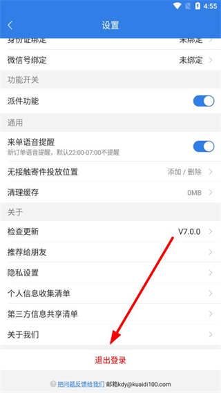3、在设置界面里,找到退出登录选项并点击,弹出确认弹窗。