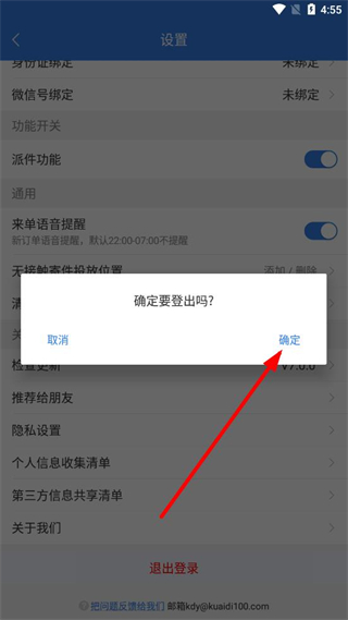 4、在确认弹窗中,点击确定按钮,即可完成账号的退出操作。