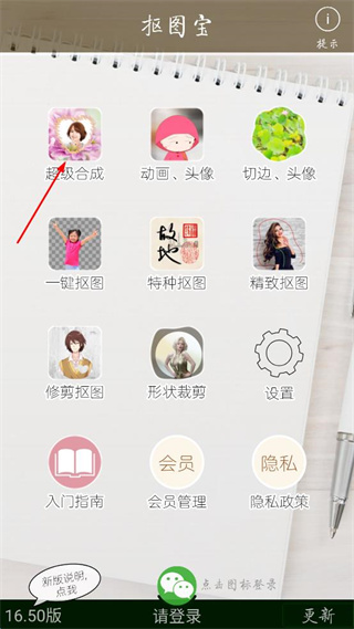 3、完成登录后,在主界面选择超级合成功能,进入对应的功能操作页面。