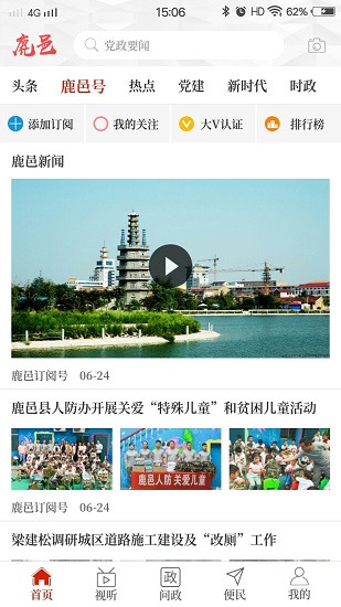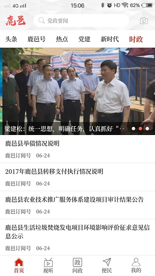 1、提供新闻资讯服务,系统将所有新闻资讯分为头条、鹿邑号、热点、党建、新时代等多个频道。