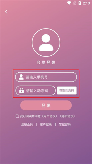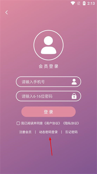 2、在会员登录页面点击动态密码登录选项,切换至对应登录界面。