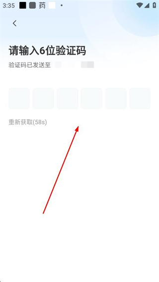 3、在请输入6位验证码页面,填写收到的短信验证码,完成输入后即可完成账号注册并登录。