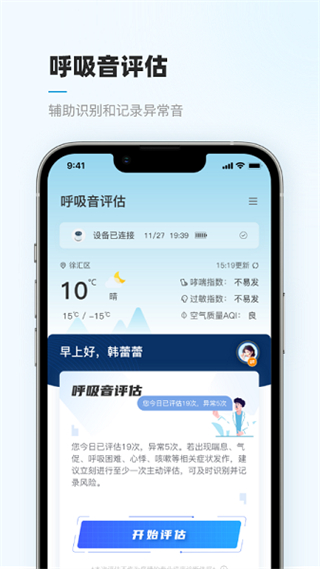 记录并识别用户呼吸音情况,提供可视化分析结果。