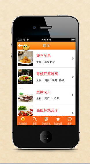 饭菜—家常菜,菜谱,食谱,家常菜菜谱大全。饭菜是厦门指粉无线网络科技有限公司开发的一款“弘扬美食文化,传播健康理念”为己任的菜谱信息服务软件。饭菜集各种菜系、口味和工艺等菜谱大分类为一体,集菜谱搜索和饮食健康资讯服务于大众。