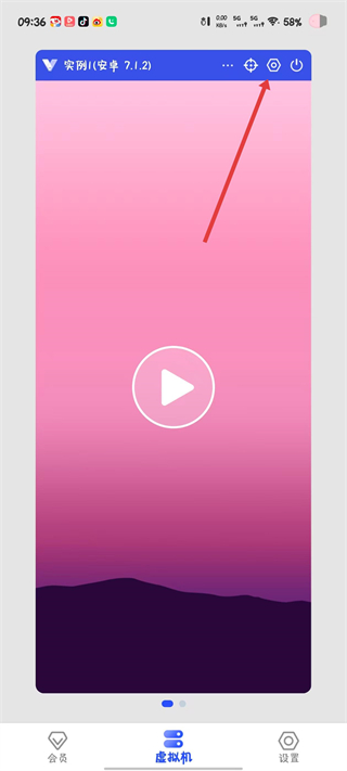 2、进入创建好的虚拟机界面,点击右上角的设置图标,进入设置页面。