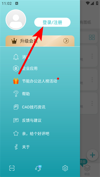 1、打开浩辰CAD看图王,点击头像区域,展开个人功能操作界面。