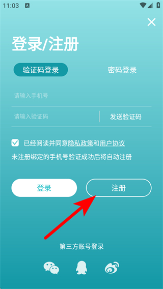 3、在登录/注册页点击注册按钮,切换到账号注册的表单页面。