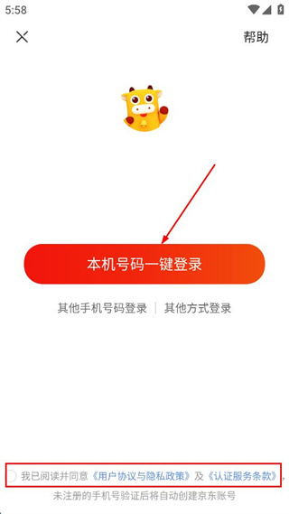 4、勾选同意相关协议的选项,再点击页面中的本机号码一键登录按钮完成操作。