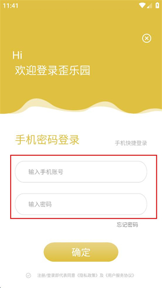 4、确认信息填写完成后,点击确定按钮,完成歪乐园软件的账号登录操作。