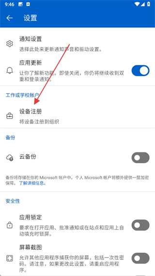 3、在设置页面中找到设备注册选项,点击进入对应的设备注册界面。