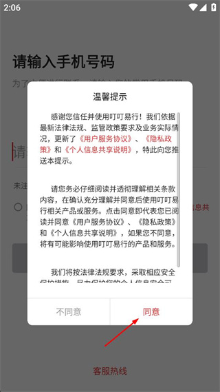 1、阅读温馨提示中的相关协议内容,点击页面中的同意按钮进入下一步。