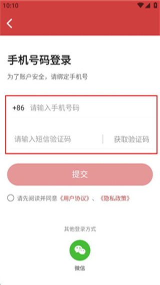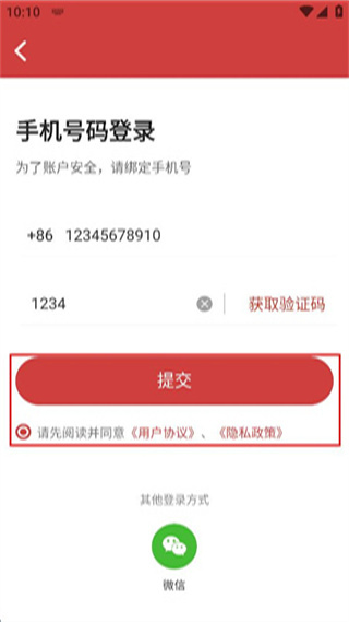4、勾选同意用户协议与隐私政策的选项,点击提交按钮,完成账号的登录操作。