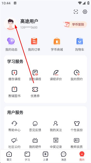 1、打开高途app进入首页,点击底部导航栏中的我的选项进入个人相关界面。