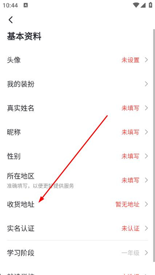 3、在基本资料页面,点击收货地址,进入地址管理页面。