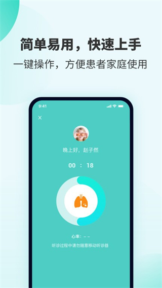 SmartHear App深入大数据科学研究与应用,支持心肺听诊音采集,同时支持记录回听和云端备份,结合自主研发新一代心、肺音实时算法,以及环境音采集和算法降噪,大大提高听诊音特征表现以及环境噪音对听诊结果的影响。