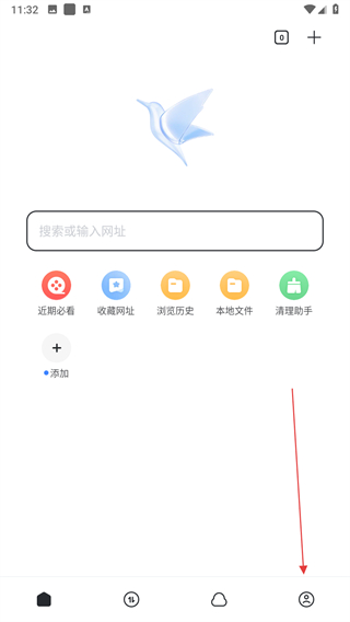 1、打开迅雷网盘进入主界面,点击搜索或输入网址栏可进行资源搜索,下方收藏网址,浏览历史等功能可快速访问常用或历史浏览内容,本地文件能查看本地存储。
