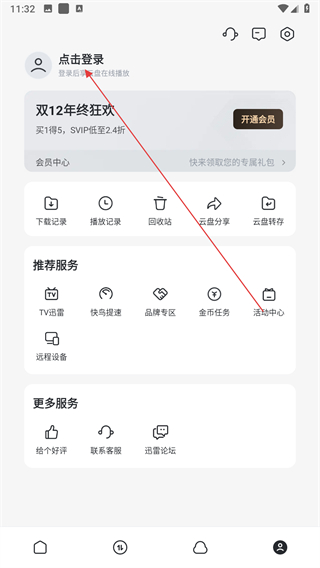 1、打开迅雷应用,点击底部导航栏最右侧的个人中心图标,进入对应的页面继续操作。