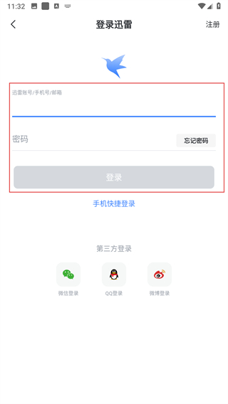 4、在登录页面填写迅雷账号或手机号、邮箱,输入对应密码后,点击登录按钮完成操作。