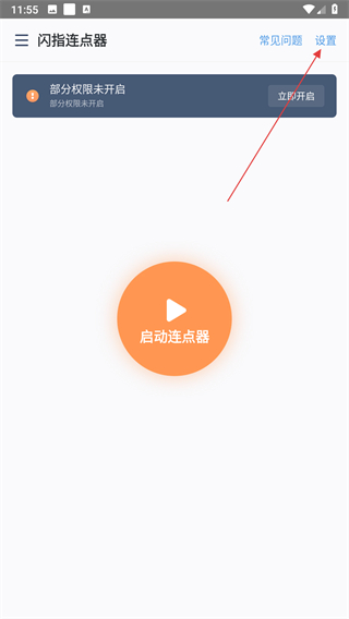 1、打开闪指连点器进入主界面,点击页面右上角设置选项进入设置页面。