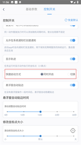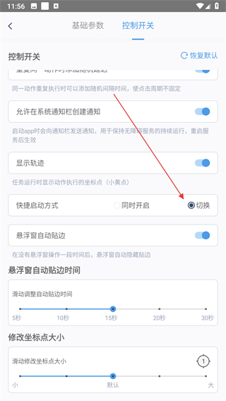 4、点击快捷启动方式里的切换选项,完成闪指连点器快捷启动方式的更改操作。